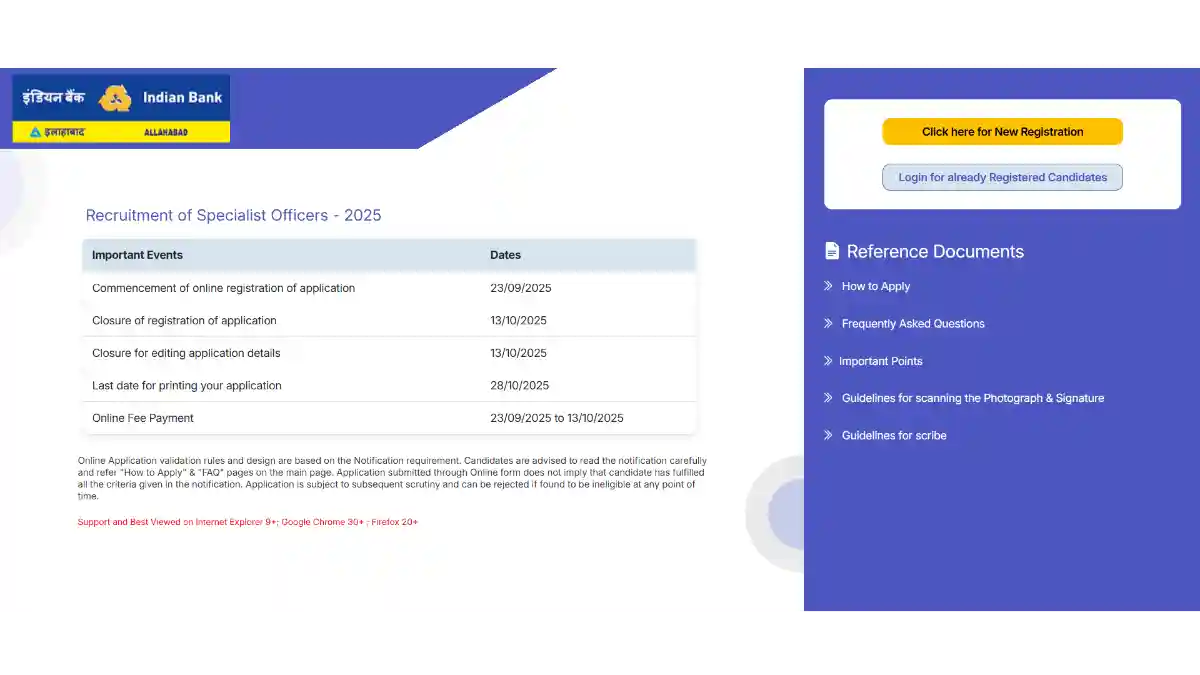 Indian Bank Specialist Officers Recruitment, Age, Qualification, Selection Process, Download pdf. Indian Bank Specialist Officers 2025: Indian Bank has released official notification for the recruitment of Specialist Officers. Pdf available at official website of Indian Bank. Candidates can now check Notification details, online application, Age, qualification, Syllabus, fee information etc. Before applying please read the … Read more
